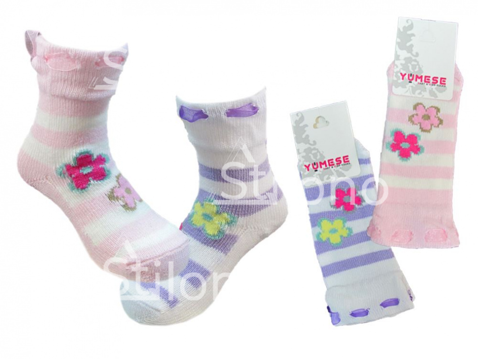 В любой сезон хлопчатобумажные тонкие носочки для малышей радуют владельцев розничных точек активными продажами. Модель с рисунком представлена в размерном ряду от 0 до 2 лет. Это изделия высокого качества, проверенное годами сотрудничества с производителем YU ME SE. Оформить заказ на хлопчатобумажные детские носочки с рисунком можно мелким, средним или крупным оптом, сформировав партию из изделий, подходящих по размеру для конкретной целевой аудитории.